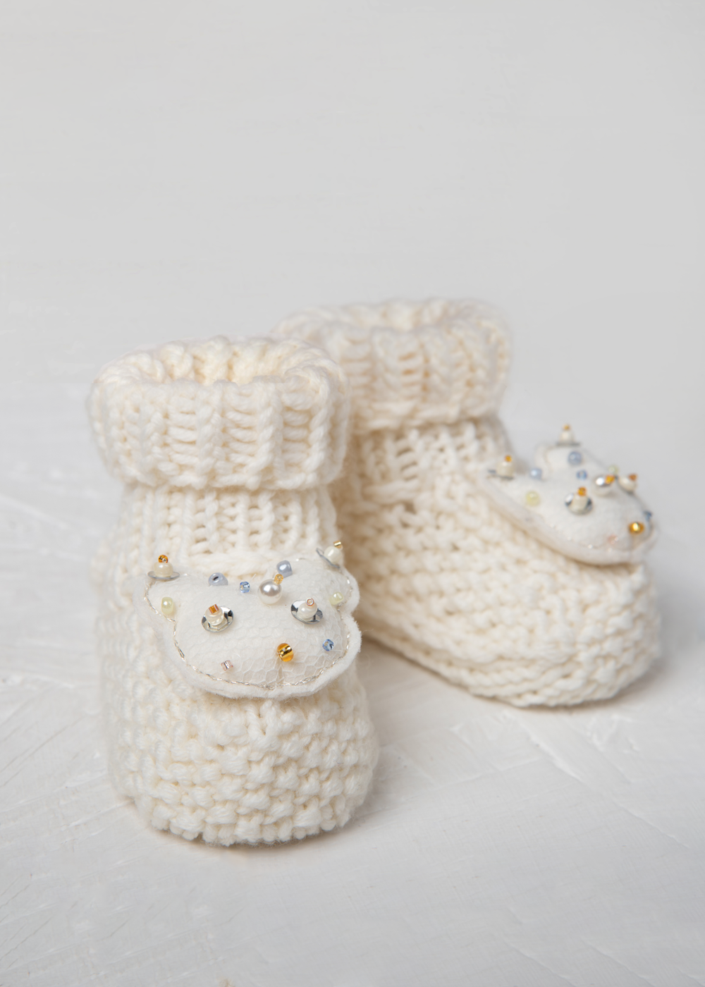 Merino wool hand-knitted booties-comfortable footwear for the smallest feet. When your baby is so tiny and fragile, you want to provide exceptional comfort for their first experience in this world. These booties are warm but merino wool does not allow the feet to overheat. It is stylish gift for various occasions: genders reveal party, a baby shower or the first visit to a grown family. Merino wool booties come in a playful box, just order the product and you can go straight to great the baby.